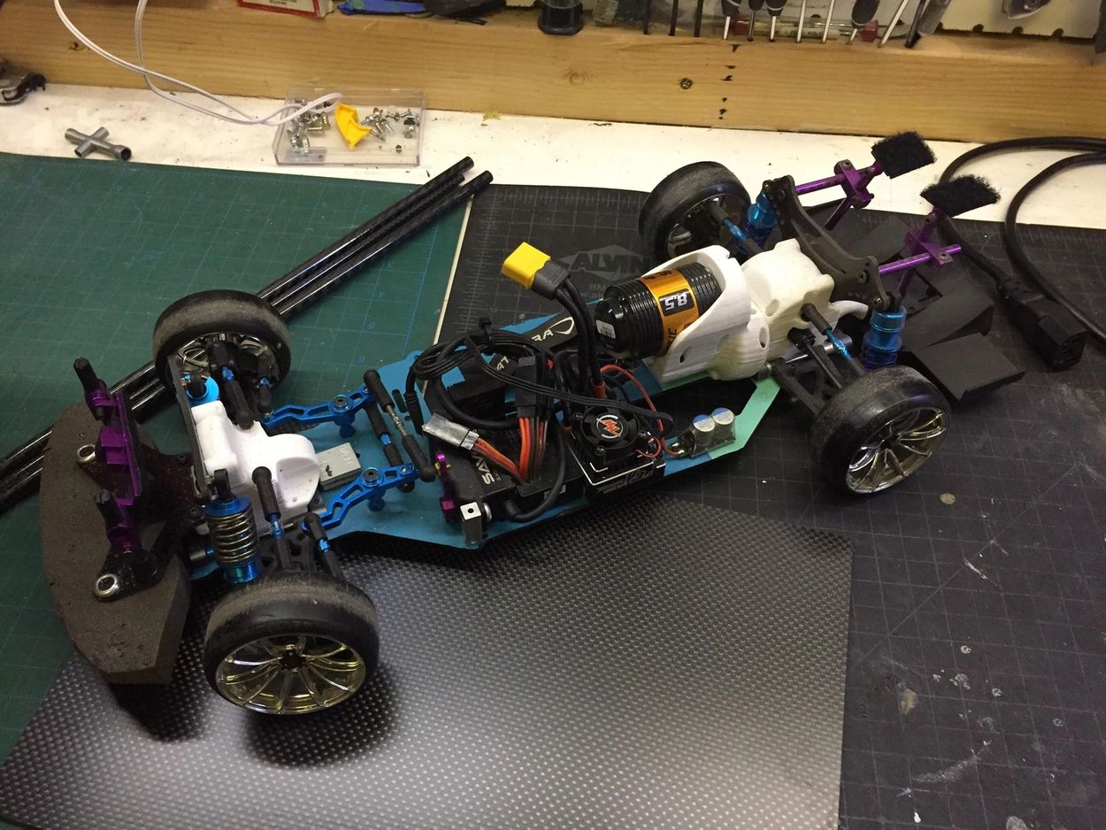 Without a track near me R/C buggies aren't really much fun. So I decided to remix all the stuff I have to try and come up with that keeps me entertained. So far this is the build set up. Going forward I may make it a little faster or just run 3s. I also am going to fabricate some new suspension mounts to improve the suspension set up as well as possibly add body mounts. I will also be digging into my full db02 build to convert it to something similar in hopes of challenging some co-workers to a