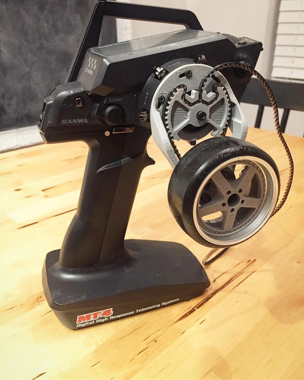 I had learned different methods for securing drive belts when designing and building my core xy 3d printer which would allow for adjustability in my design. I released this design on several stl repositories with a full pulley gear set to allow for anywhere from a direct 1:1 ratio up to a 5:1 radio which brings the lock to lock rotation closer to a full size race cars steering input.